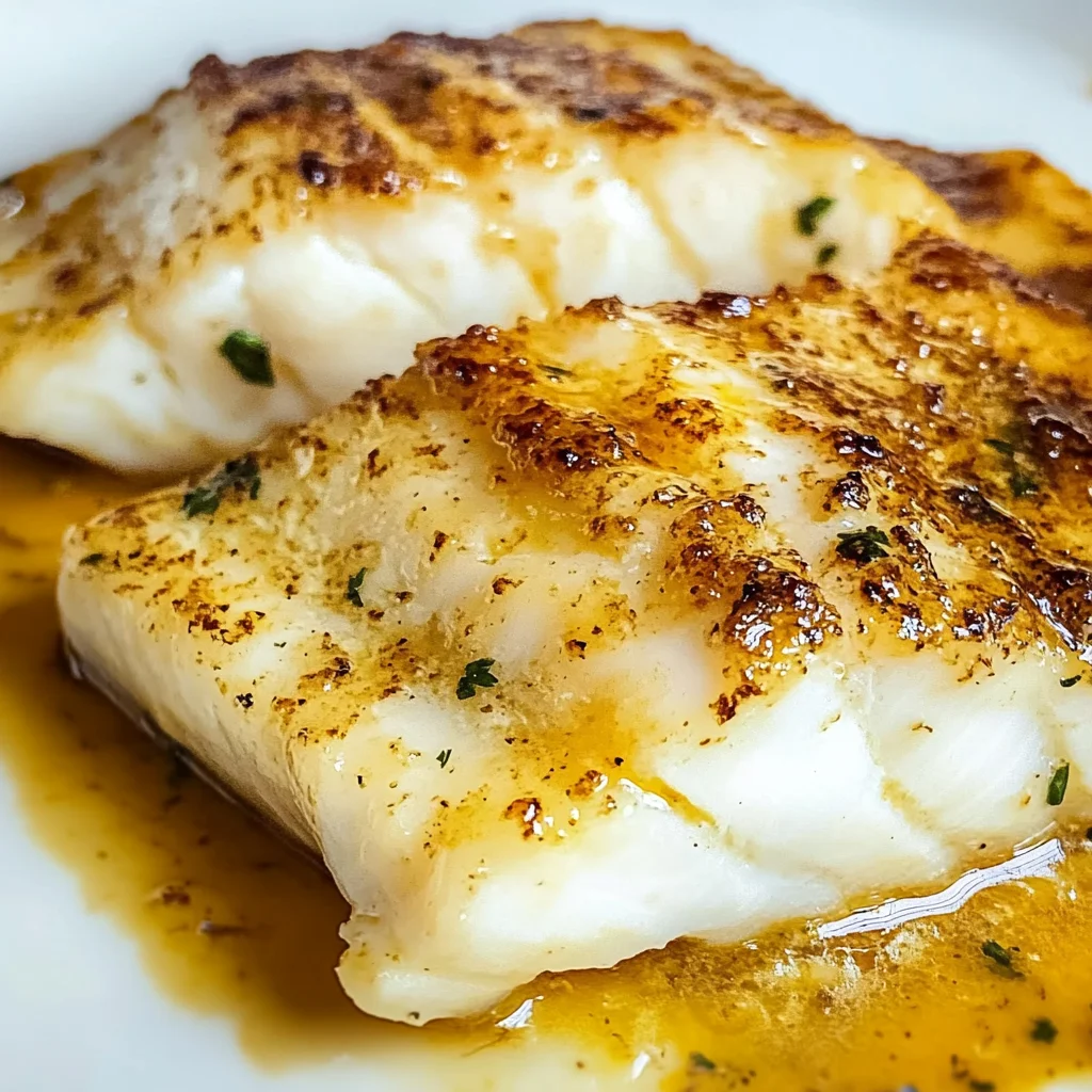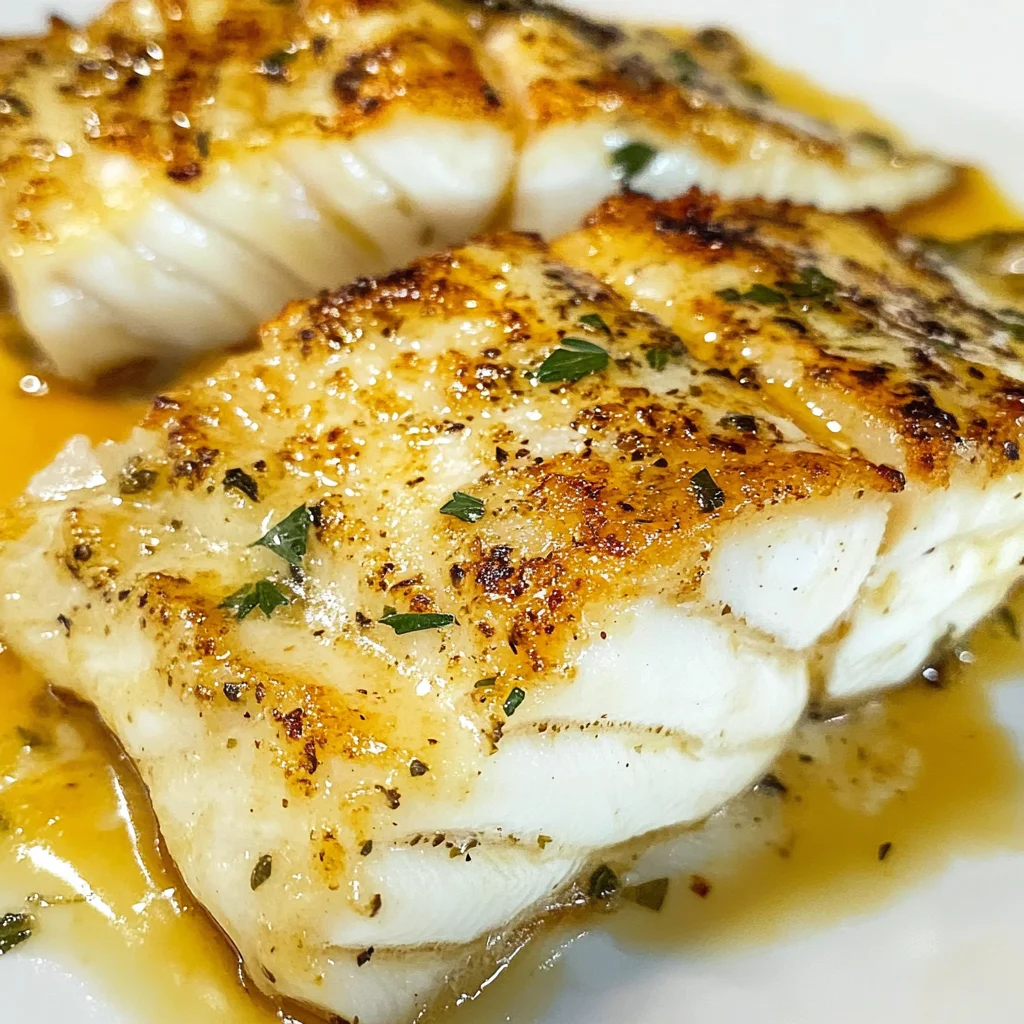 A cozy dinner featuring tender Chilean sea bass fillets, perfectly seared and served with a rich buttery sauce.